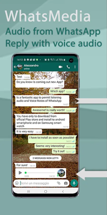 This app lets you receive WhatsApp Audio and Voice Notes media directly to your wearable Watch Samsung: