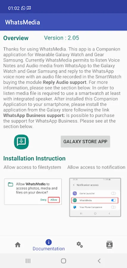 Important requirement: You must have installed on your smartPhone "WhatsMedia for Samsung Smartwatch" version 2.x