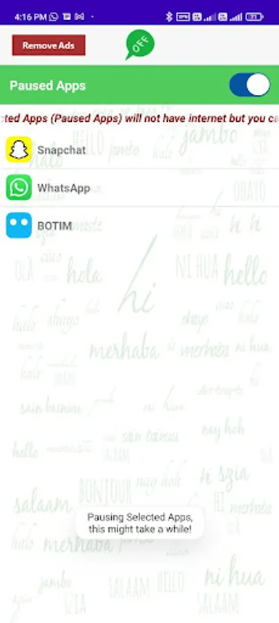 We are just taking Whatsapp out from the internet so you don't need to turn off wifi/mobile data.