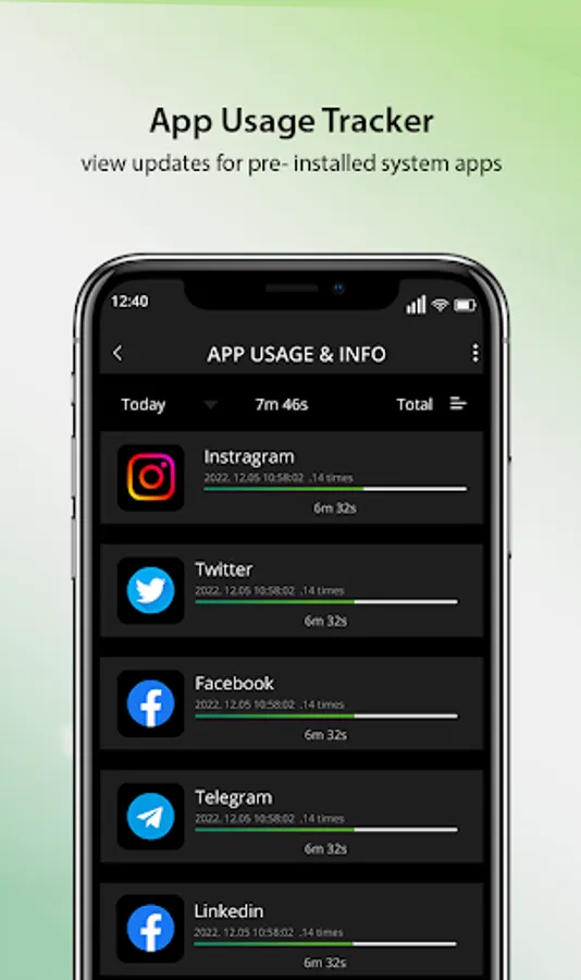 This App Usage using this app and also track your phone's other installed app usage. Whats Online Tracker help Number of app usage track for free,to know amount of time spent using each application installed in your device.