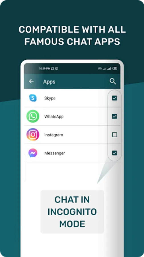 ● With Incognative Chat your contacts won't know that your up and chatting with someOne because we hide your online status.