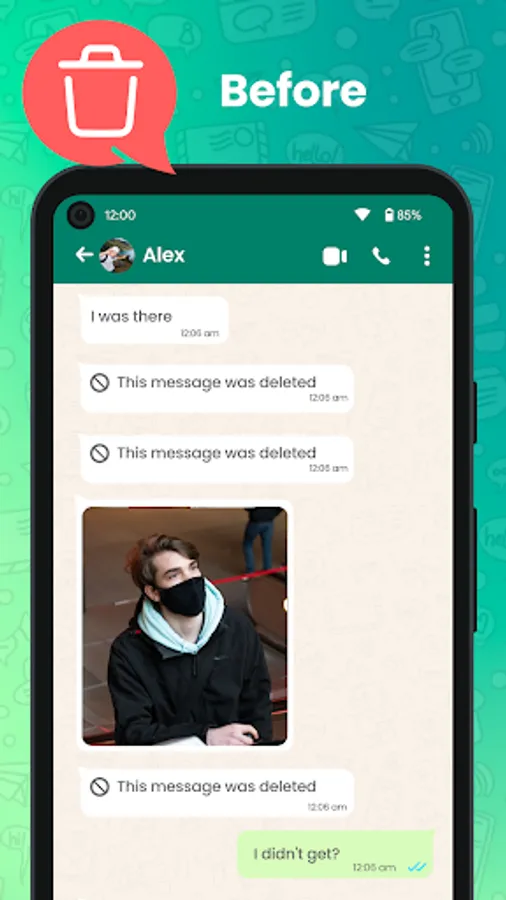 Get this app and view deleted message and media that have been deleted by the sender