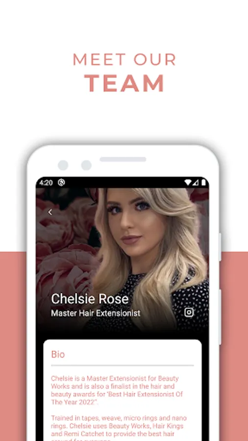 The official app Chelsie Rose app! Download to make appointments and get all of our latest updates. Turn on notifications to be notified of any cancellations. Chelsie is a Master Extensionist for Beauty Works and is also a finalist in the hair and beauty awards for ‘Best Hair Extensionist Of The Year 2022”. Trained in tapes, weave, micro rings and nano rings. Chelsie uses Beauty Works, Hair Kings and Remi Catchet to provide the best hair around for everyone. Chelsie is based in Warwickshire, UK.