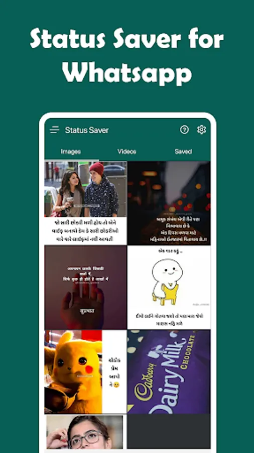 Status Saver For Whatsapp is here to help you download or share friend’s statuses in just one click. You can save your desired image or video statues in your gallery or you can share with friends directly within the WA status app. GB What's status saver has its own media player so you can play your desired video status within the app and also download or share those videos with friends. You don’t need the internet to use WA status saver app; it is totally offline.