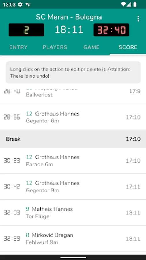 Due to the quickness of the game, special attention has been given to a fast and intuitive data entry, every action can be inserted with 2 taps, choosing from concise lists.