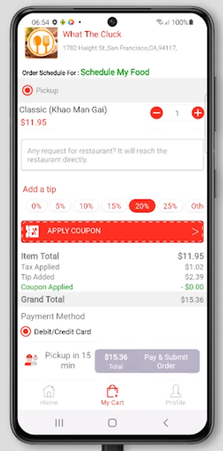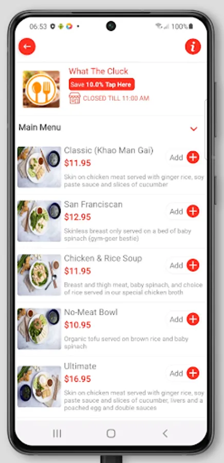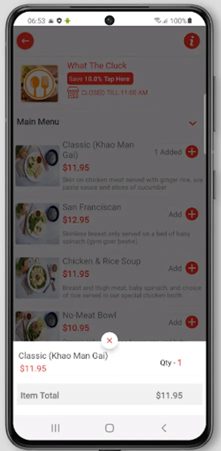 1. Get the What The Cluck Online Order app and conveniently order from anywhere on your Android phone and tablet.