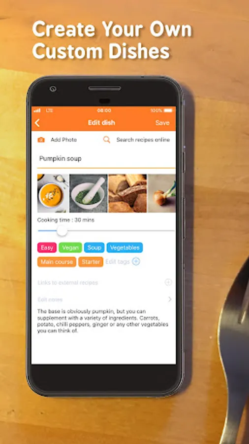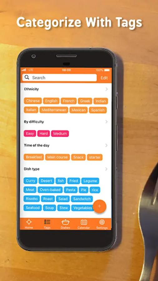 - Categorise dishes with tags that match your own dietary style
