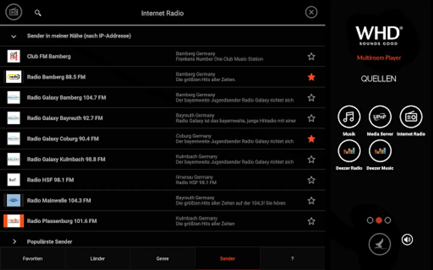 The available music sources are diverse, for example: on the smartphone and tablet stored music and Internet radio with over 30,000 stations worldwide. Next sources to be added in the coming months:, Media Server, and streaming service Deezer. The WHD wireless audio solution, you can access these music sources all over the interior and exterior use on only a single app and enjoy your music.
