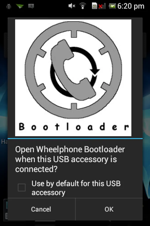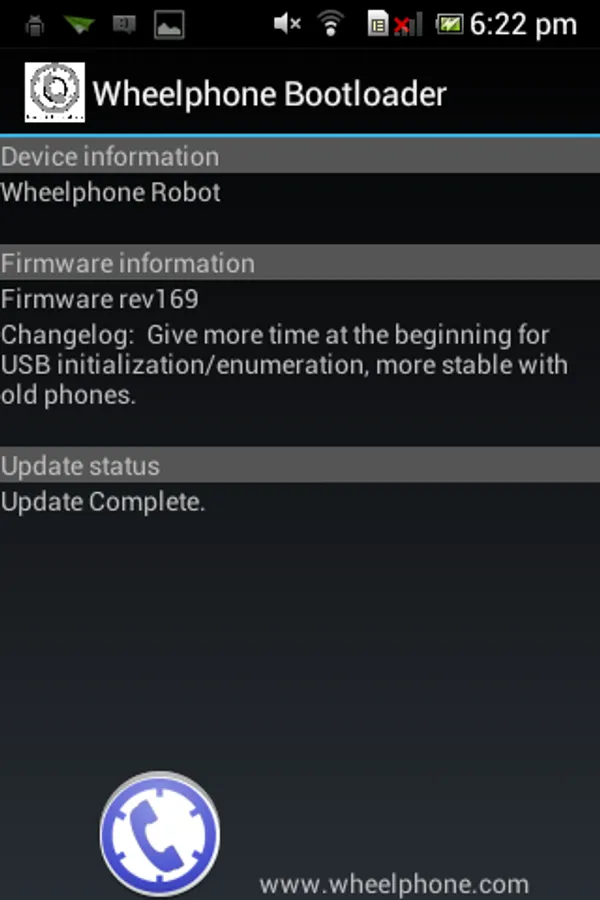 Bootloader application used to update the Wheelphone robot firmware. When the application is started it will automatically update the robot to the last available firmware. You need to be connected to Internet in order to download the firmware binary and the robot need to be in charge in order to enter "bootloader mode".