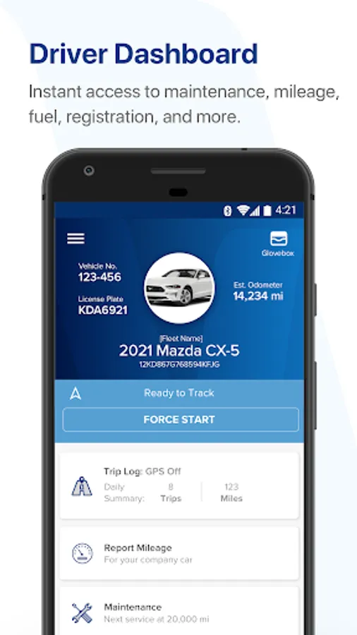 • Tools for Fueling at the Pump (snapping pictures of the odometer to certify your fuel entries, access your fuel card credentials) and insights on your fuel usage