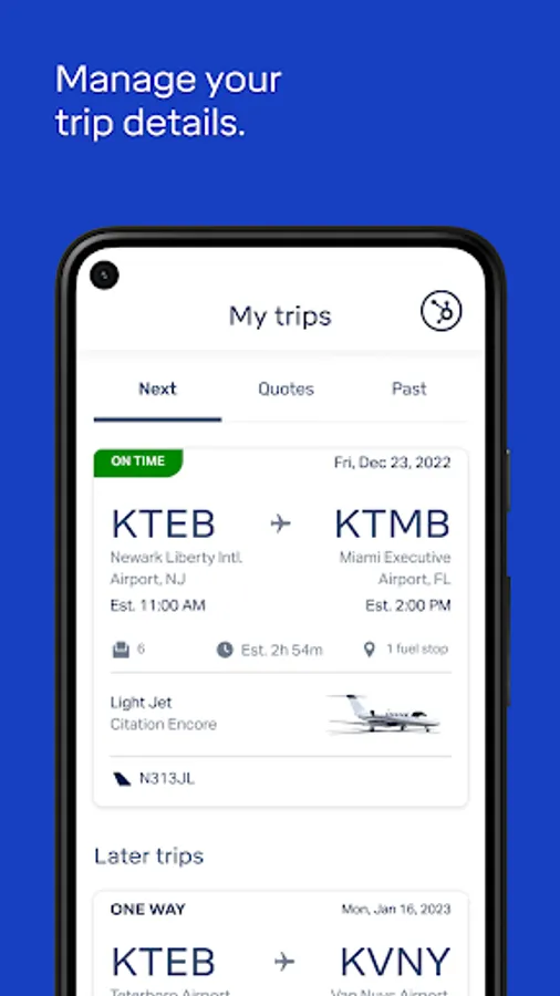 • With push notifications and SMS, you’ll receive the latest information about your flights, including your tail number and FBO.