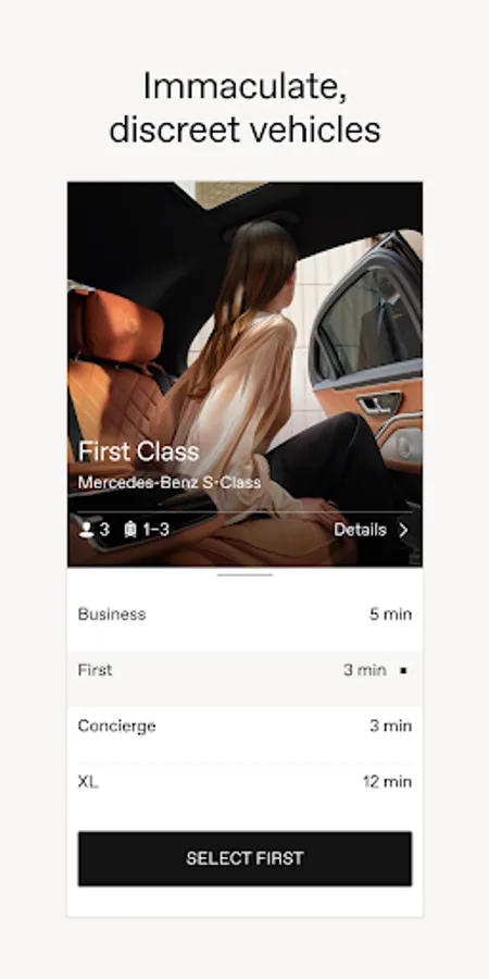 Business is our standard service that is anything but standard. First offers even higher levels of comfort. XL is ideal when you need space for more passengers, luggage, or both.