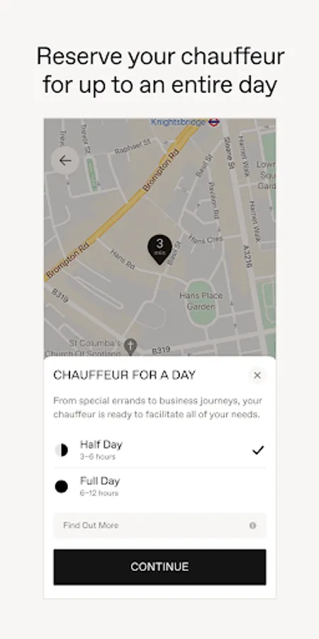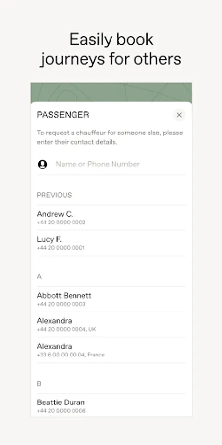 The app allows you to request a chauffeur for yourself or on behalf of other passengers.
