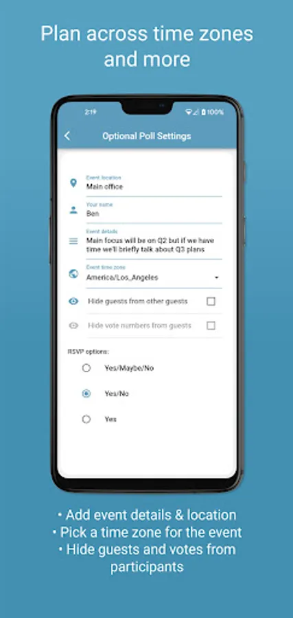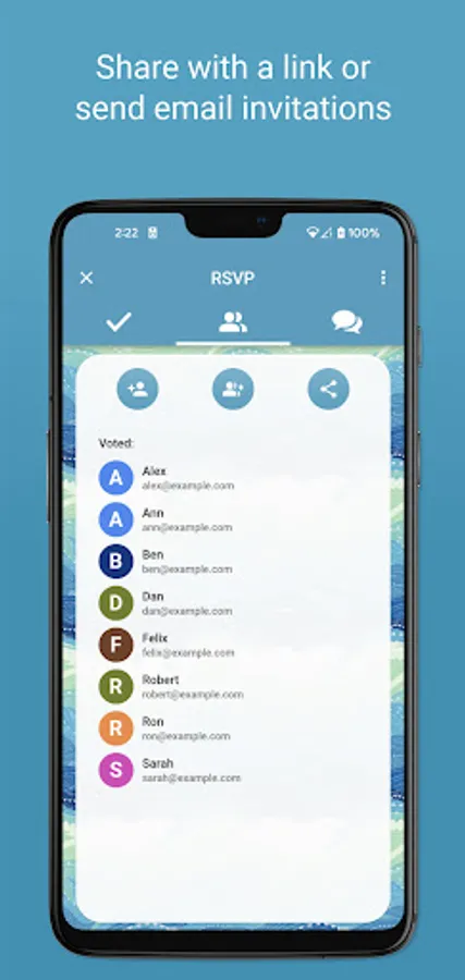 - Invite up to 20 people to vote in each poll by either sending them an email invitation or sharing a link via text or social media to the poll