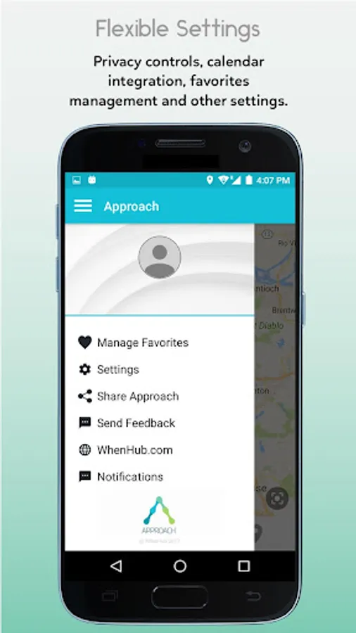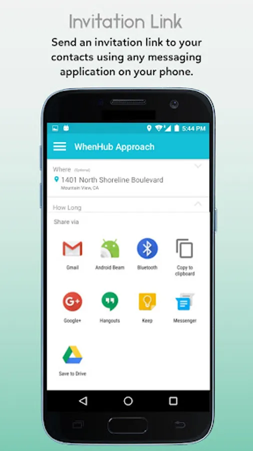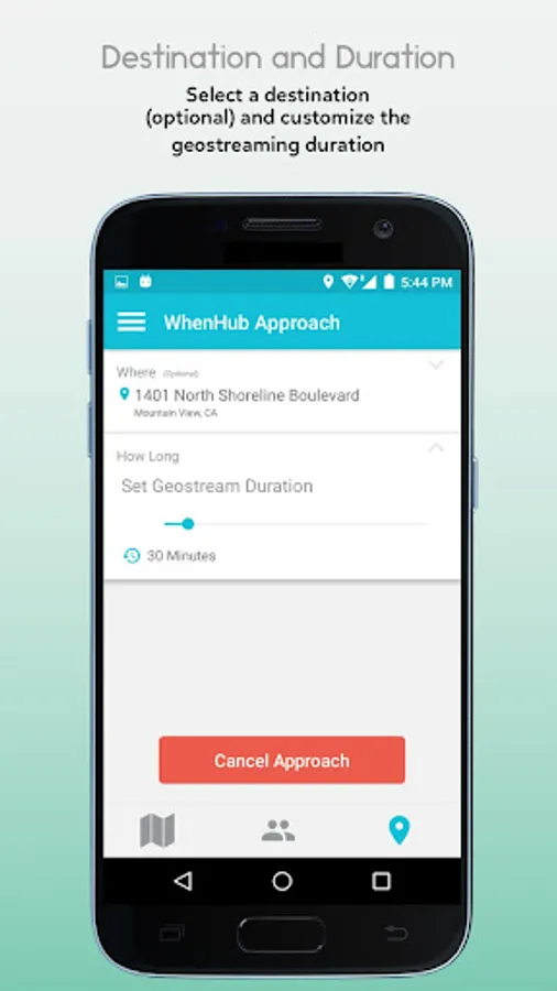 Approach by WhenHub, allows geostreaming (i.e. real-time location sharing) for yourself and other invited participants as you approach a meeting, event or final destination. With Approach you can share and see location information in real-time, for a fixed period of time, and for a select group of people on any smartphone.