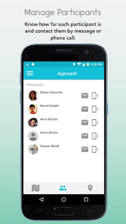 Participants who join the Approach have privacy settings to control their geostreaming or sharing contact details with the group. Users can also make phone calls directly thru the app to others involved in an active Approach. Notifications are sent as participants join, leave or are near the destination.