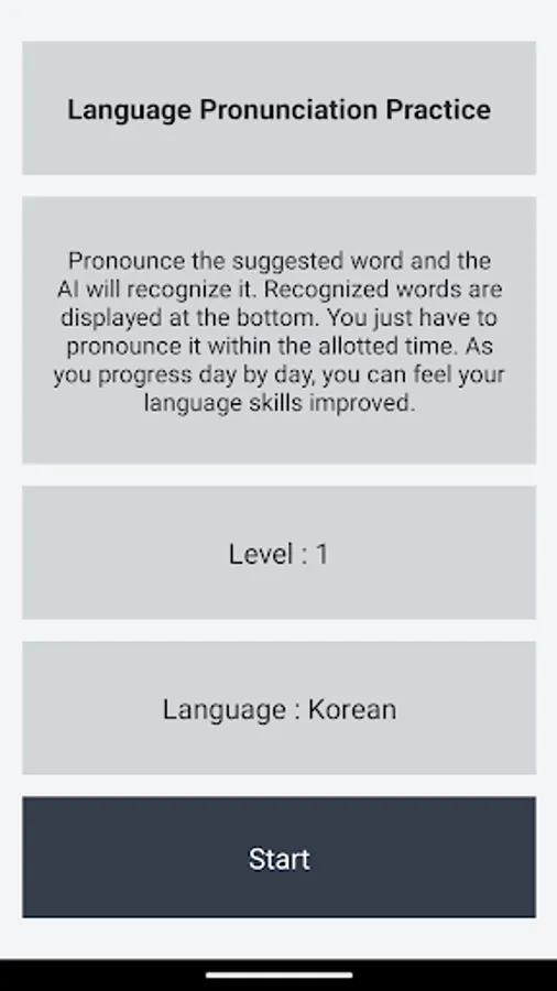 The recognized letters of the word you pronounce are displayed at the bottom.