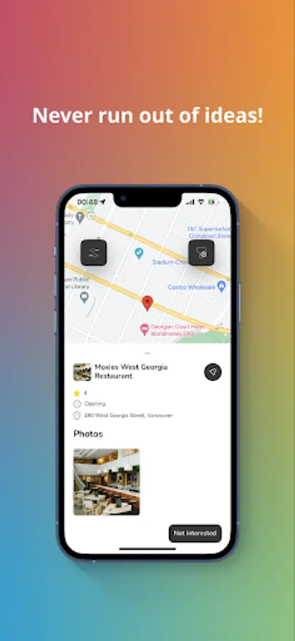 Discover the best of your city with WhereaNext! Our app recommends fun activities and delicious foods based on your location, so you can always find something new and exciting to do. Download now and start exploring!
