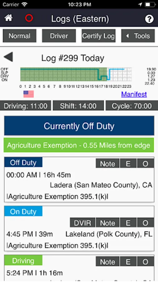 The Geowiz HOS agriculture specific log book automatically fills in log notes, correctly logs hours inside the exemption and then reports as off duty, reconciles exempt driving so drivers do not have to explain exempt unassigned driving to inspectors or auditors, automatically starts recording hours of service when outside exempt areas, properly transmits only the non-exempt driving information to the FMCSA if required, and allows for agriculture exemption routing on maps so drivers can plan routes with full knowledge of where exemptions begin and end.