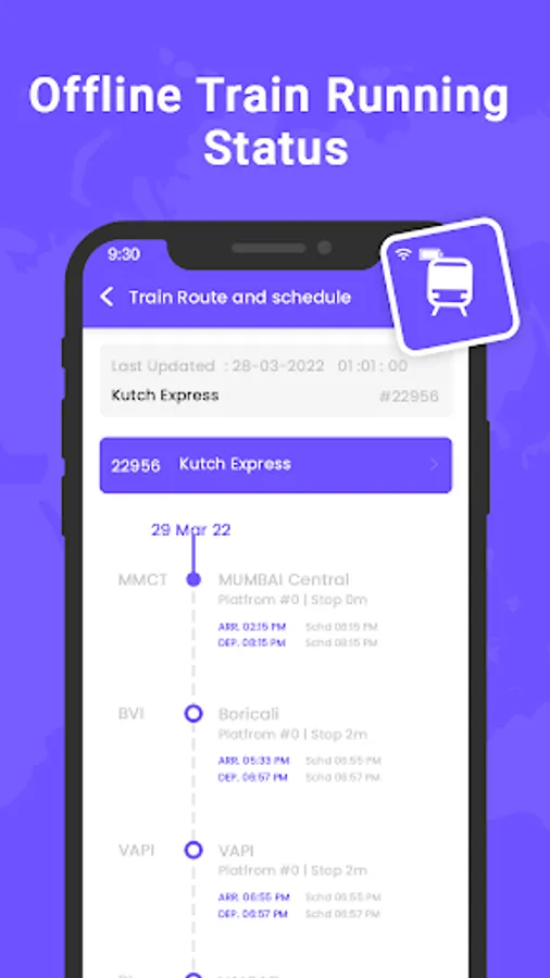 Train App - Book Tickets, PNR Check Live Train Status, Check Train Time Tables, Get Live Station Status, Check Train Schedule Get Seat / Berth Map. spot my train is a feature that helps to spot your train with the help of railway pnr status or just directly type the station name or you can also type train number to see live running status.
