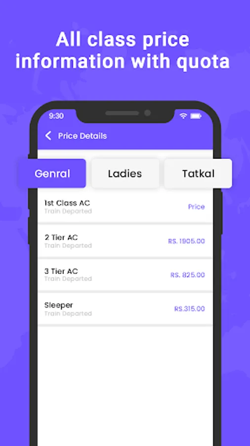 - Get the train fare enquiry with respect to Age, Quota ,class and date of journey.