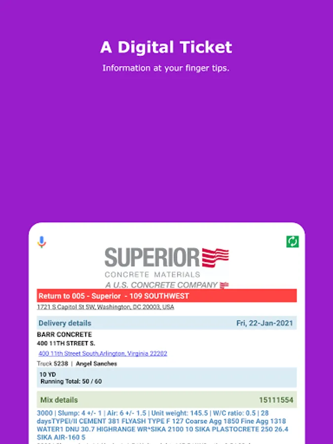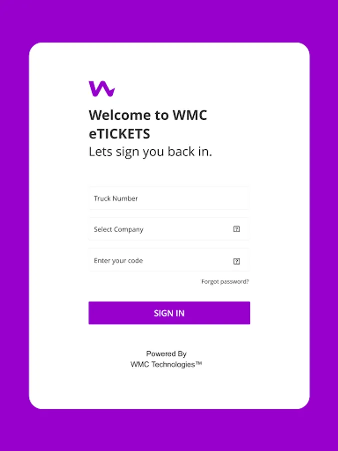 WMC eTickets is an app for drivers to clock-in and clock-out from their mobile device, manage pre-trip and post-trip, obtain digital signatures and send electronic tickets. The app integrates with WMC Technologies dispatching solution, allowing producers to use real-time data for better decision making.