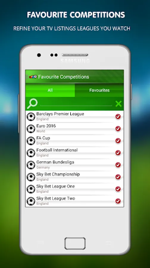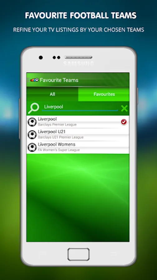 - Create your Favourite Football Teams, Competitions and TV Channels to refine your TV Guide to what’s important to you.