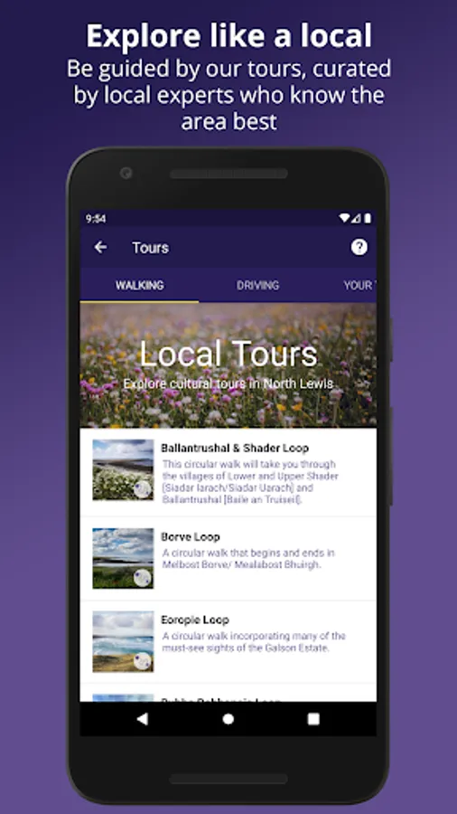 The Visit Galson Estate app can also be used offline, as you can download routes and channels prior to the start of your journey - perfect for when you don’t have a data package, or in areas where signal is poor.
