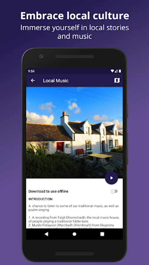 Immerse yourself in our local culture – listen to our music, history and stories through in-app audio tracks.