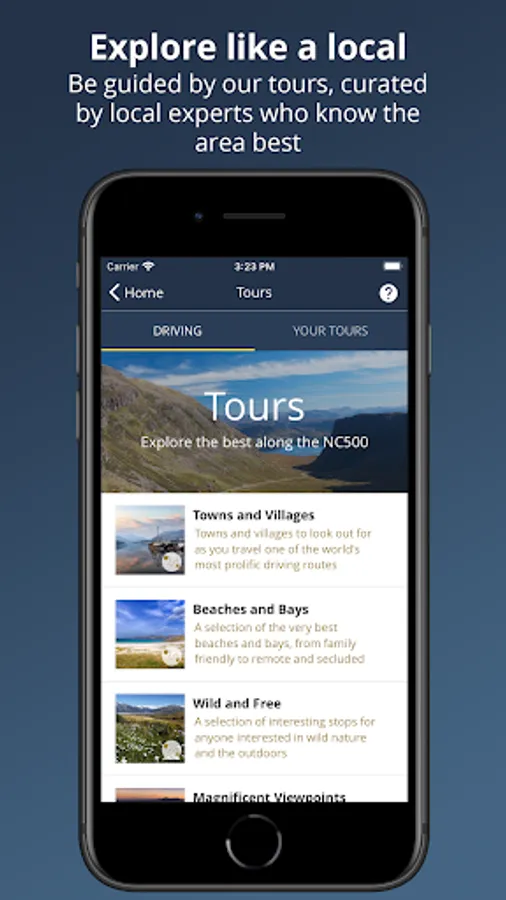 A travel and cultural guide, the Official NC500 app helps you find the most interesting sights and places as well as the stories, songs and music behind them.