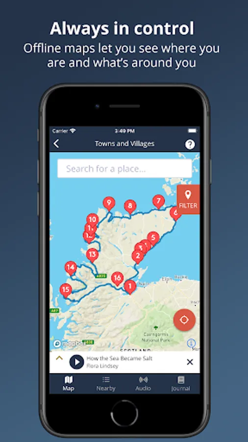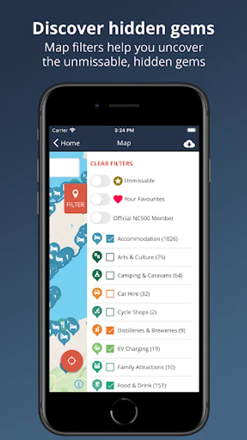Tailor your trip - Powerful map filters let you tailor your trip, whether you want to discover a hidden gem, find a scenic view, natural wonder or historic building. Or even just the closest car park!