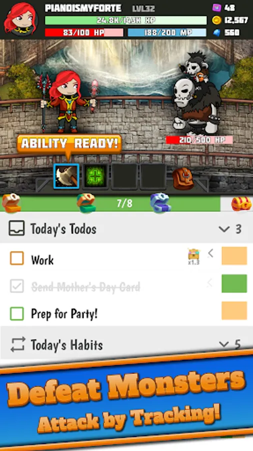 Gain XP, level up, upgrade stats, cast spells, and gather gold to buy powerful gear - your 'done habits' and tasks reward you with RPG spoils.