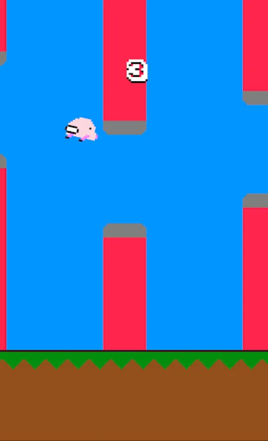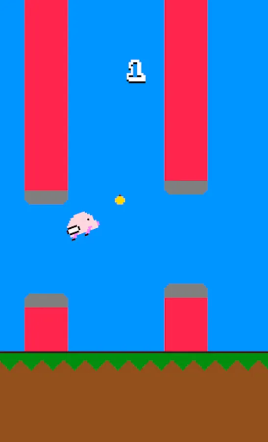 Tap the screen to fly your pig through the silos and collect the golden apples for extra points.