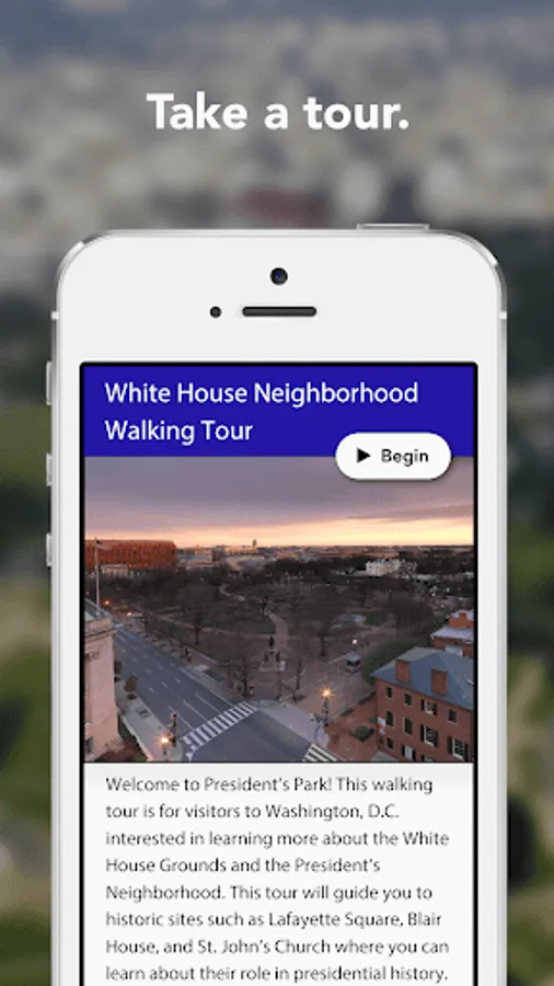 Experiencing the White House offers multiple tours related to the Executive Mansion in a single app, including an intimate, room-by-room virtual experience of the White House, a companion tour for guests visiting the building in person, and a guided walking tour around the President's Neighborhood for people visiting Washington, D.C. The White House Historical Association is continually adding new tours and features about America's most famous residence.