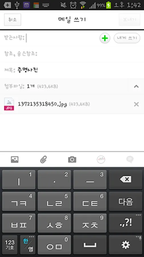 ( You can send that photo through email attachment +++ When you touch the email button, the photo will save in your SD card)