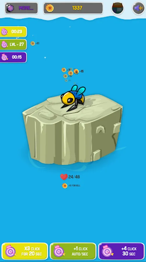 Click on monsters, save currency, exchange for nice bonuses. Many different monsters, open them all.