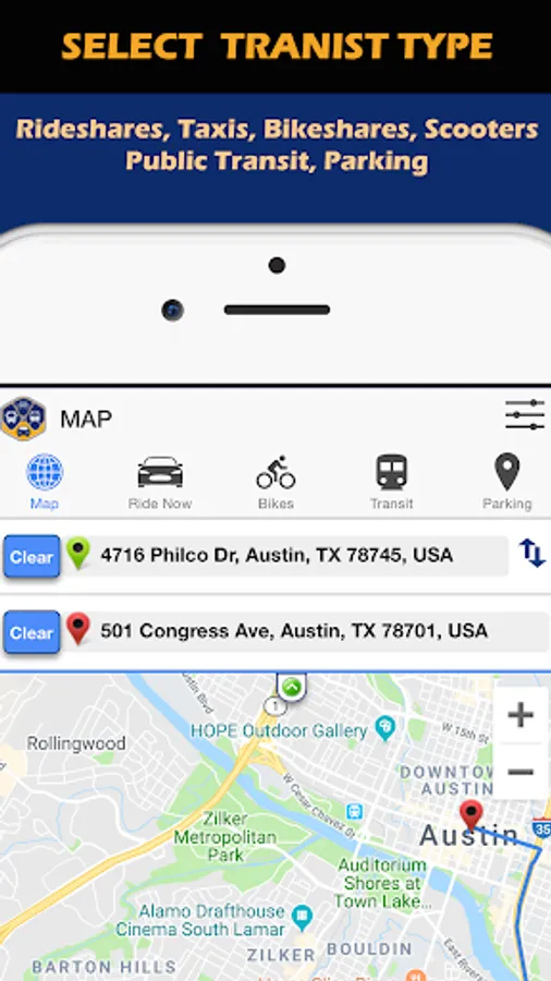 Save time and money on every ride! Whipster compares prices, ETAs and availability for all forms of urban transportation. Whipster lists rideshares, taxis, bikes, scooters, public transit and parking enabling you to find the cheapest and fastest way to get around town. With all options in one app there’s no need to flip flop between multiple apps ever again. With Whipster you get all ride options in seconds!