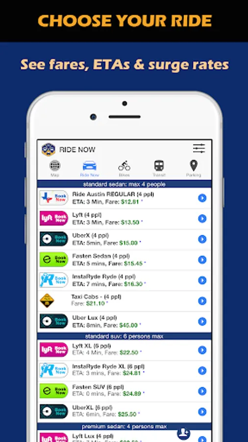 We access all available rideshare services (including taxi’s) in your area and provide you with a list of choices - download the app and start saving today!