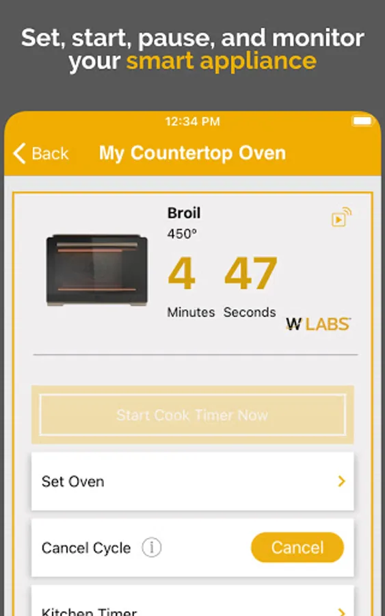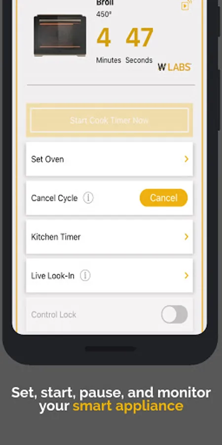 - “Live Look-in” lets you watch meals cook on your mobile device from any location.