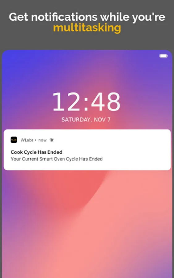 - Receive push notifications when a cycle is complete, so you know exactly when to transfer from washer to dryer or take out the laundry.
