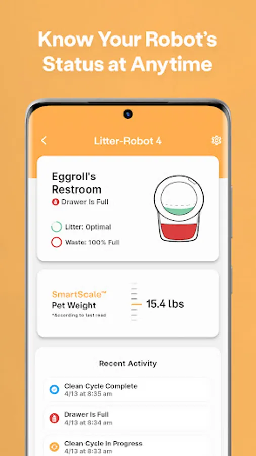 ● Get Real-Time Status Updates: Turn on push notifications to know when your Litter-Robot needs your attention. Customize alerts to find out when it's cycling, the drawer is full, or the unit is paused.
