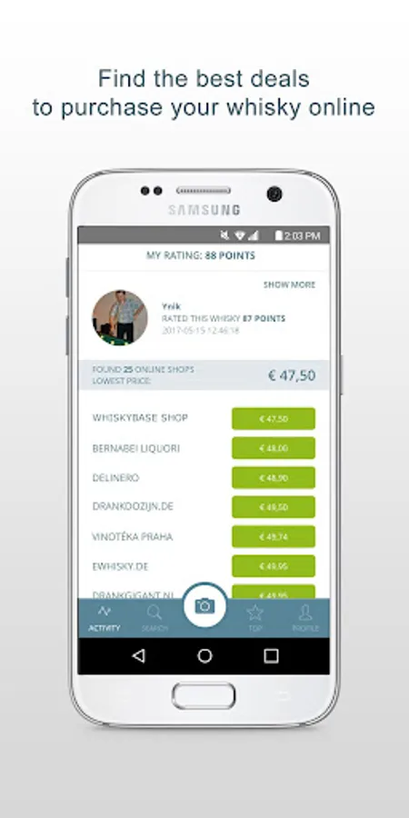 Whiskybase is the largest whisky database in the world, it has over a 120.000 bottles on record. With more than 1.2 million ratings and reviews, it is the perfect app to use on your whisky journey. Use the label or barcode scanner to find the right bottle. Read reviews, compare scores and find the right shop to buy your whisky.