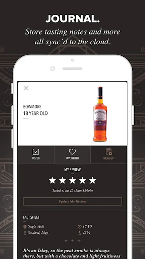 Whisky Journal provides a single tool right from your pocket, to: