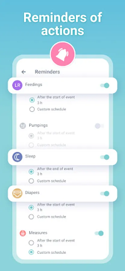With the click of a button your feedings and baby care history will be stored in the app. You will have an easy-to-maintain history of your baby’s growth.