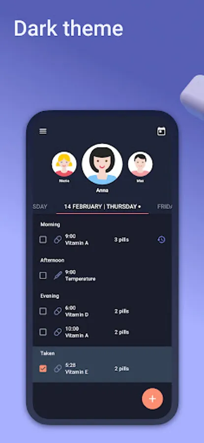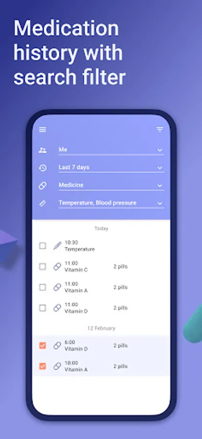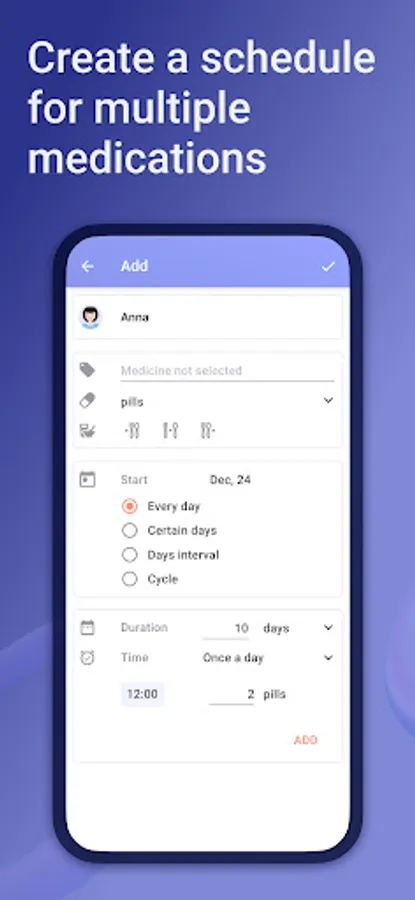 All you need to do is enter the dosage and time of taking the medicine, and the app will remind you about it.