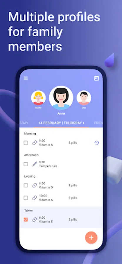 • 2 profiles in the free version and unlimited profiles in the Premium version to track the medication intake of the whole family