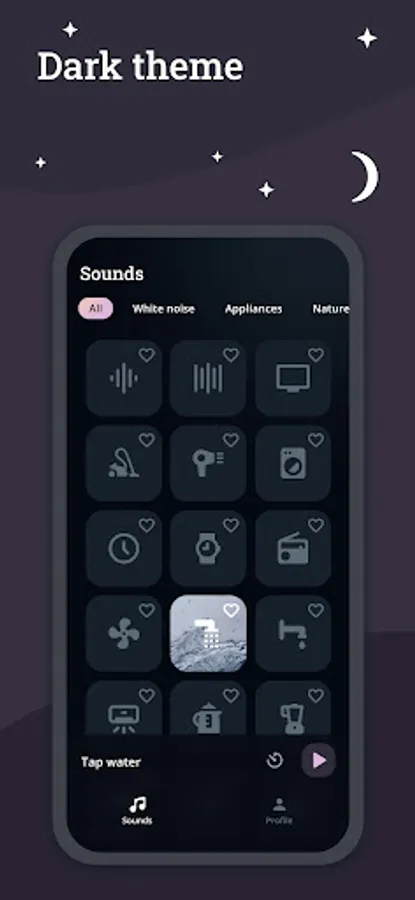Baby white noise app is as easy to use as possible and includes ambient sounds to help you relax during the day and get a good night's sleep.