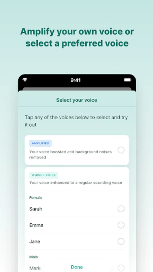 The Whispp app converts your affected voice or whispered speech into a clear and natural voice. You can also choose to only boost its volume.