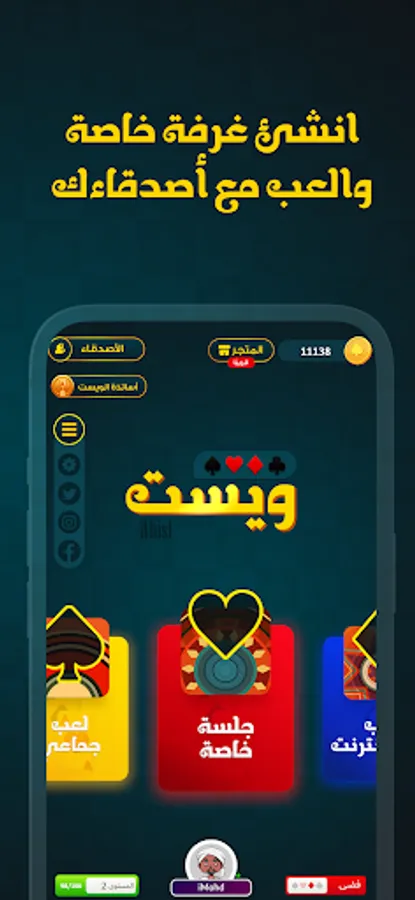 AlWest is an old card game full of fun, clubbing and passion governed by elaborate laws and rules. The AlWest game is one of the oldest and most famous card games in the world, from which it borrowed most of the card games currently prevalent, as it started in the eighteenth century to find its place in social events and a direct challenge between four players Each two represents one team, Elwest is the most professional game among the current playing cards because of the strict rules in the game, which increases the challenge between the players and the fun with every victory achieved by the team.