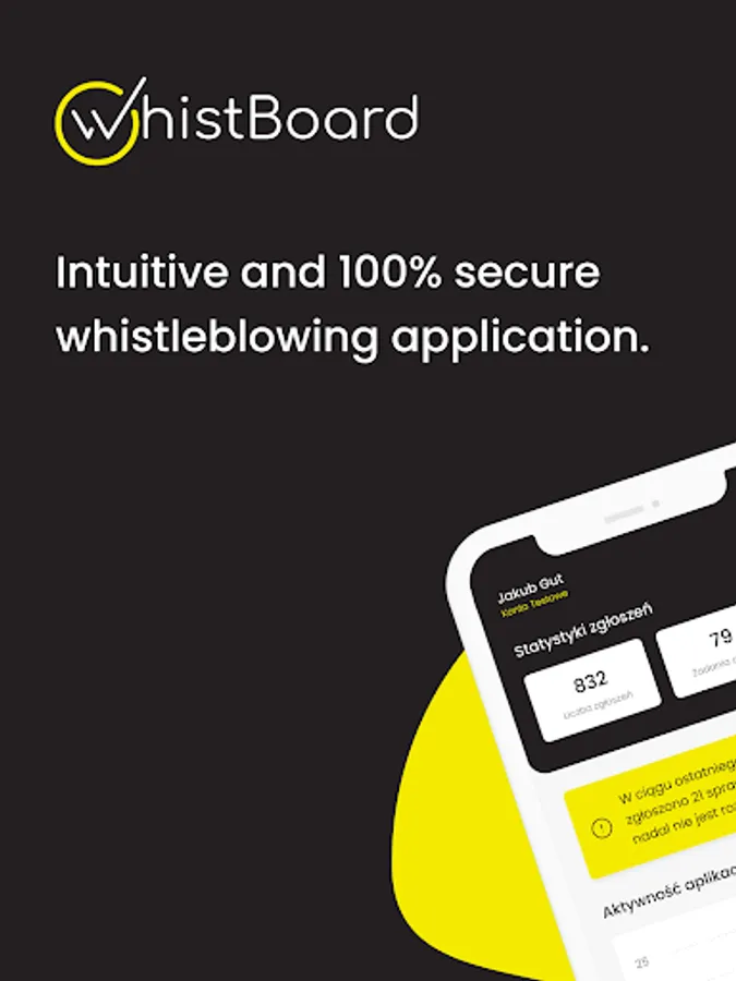 WhistBoard is a modern solution in the field of whistleblower protection. Thanks to WhistBoard, you will safely and quickly find out what is happening inside your organization, all in accordance with the latest European Union guidelines on whistleblower protection. Using WhistBoard will allow you to strengthen the image of a reliable and trustworthy employer - do not wait and open your organization to the voice of its employees.